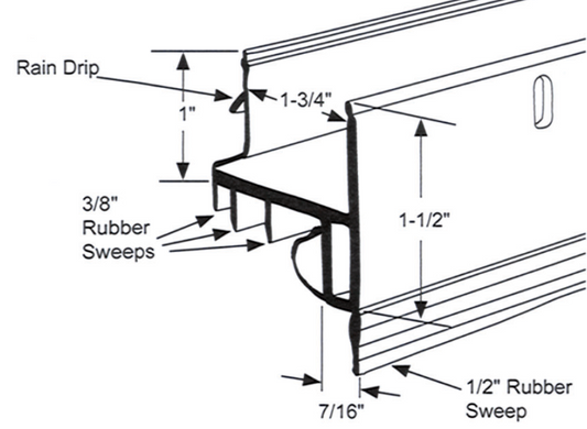 013- Bottom of Door Shoe 1-3/4"W x 1-1/2"H Plus 1/2" Rubber Weatherstrip Door Sweep 36" Long White _ 12-1378W