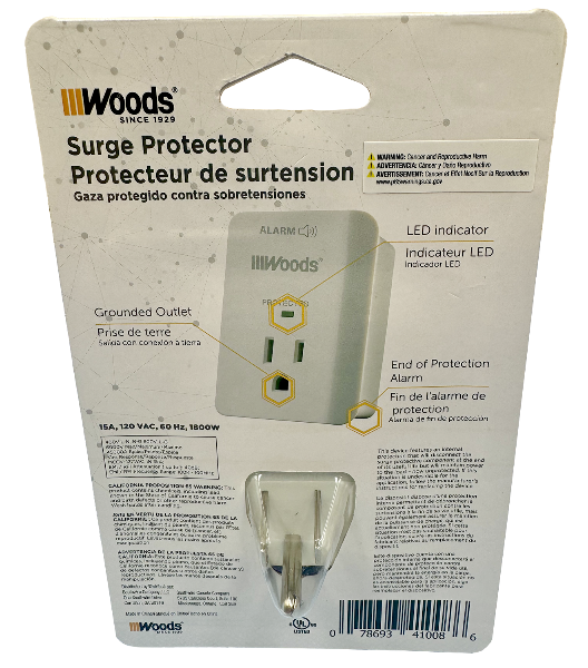 0130b Woods Surge Protector Creates a Buffer Between Power and Equipment to Prevent Electrical Surges From Damaging Attached Equipment _ 041000