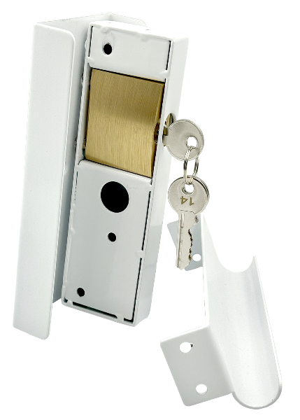 034- Expandable Gate Slam Lock White _ E1L1W