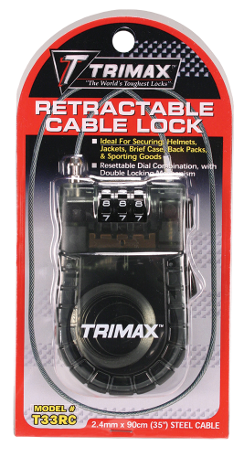 TRIMAX-102 Retractable Cable Lock 3 Digit Combination 36" x 3mm Steel Cable _ T33RC