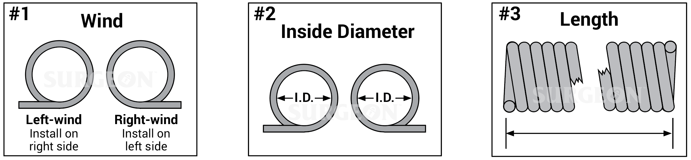 #2 You must determine the inside diameter. The common garage door spring inside diameter is 2".