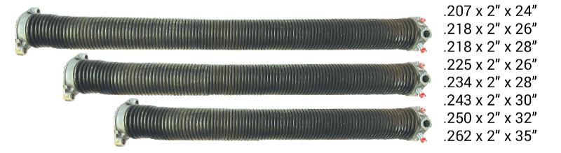 First standard size spring listed in column next to 3 garage door spring photos below is that of what was explained above and shown as Standard Size .207 x 2" x 24"